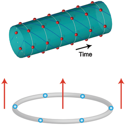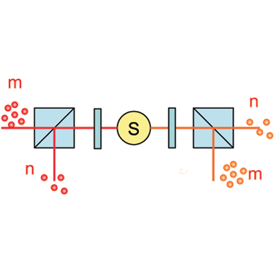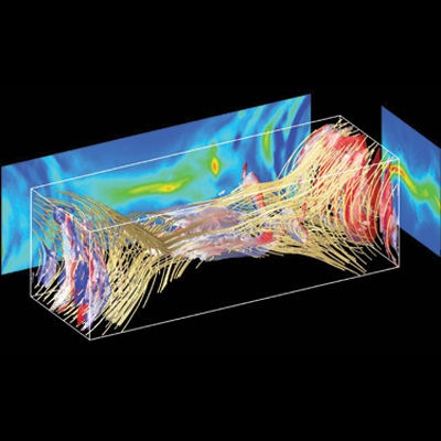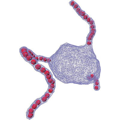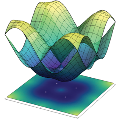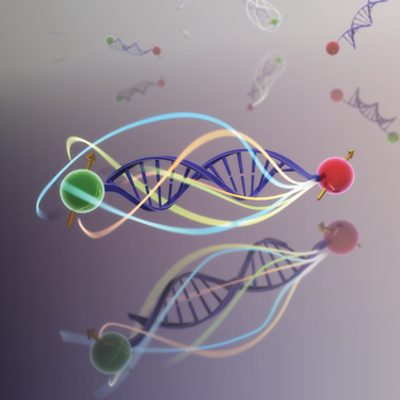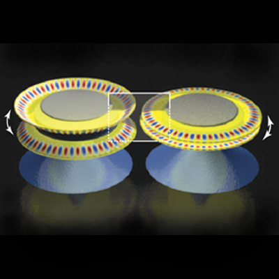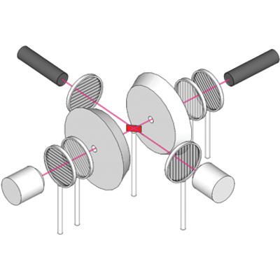 An artistic three-dimensional view of an example bow-tie nanoantenna consisting of eight gold cubes.